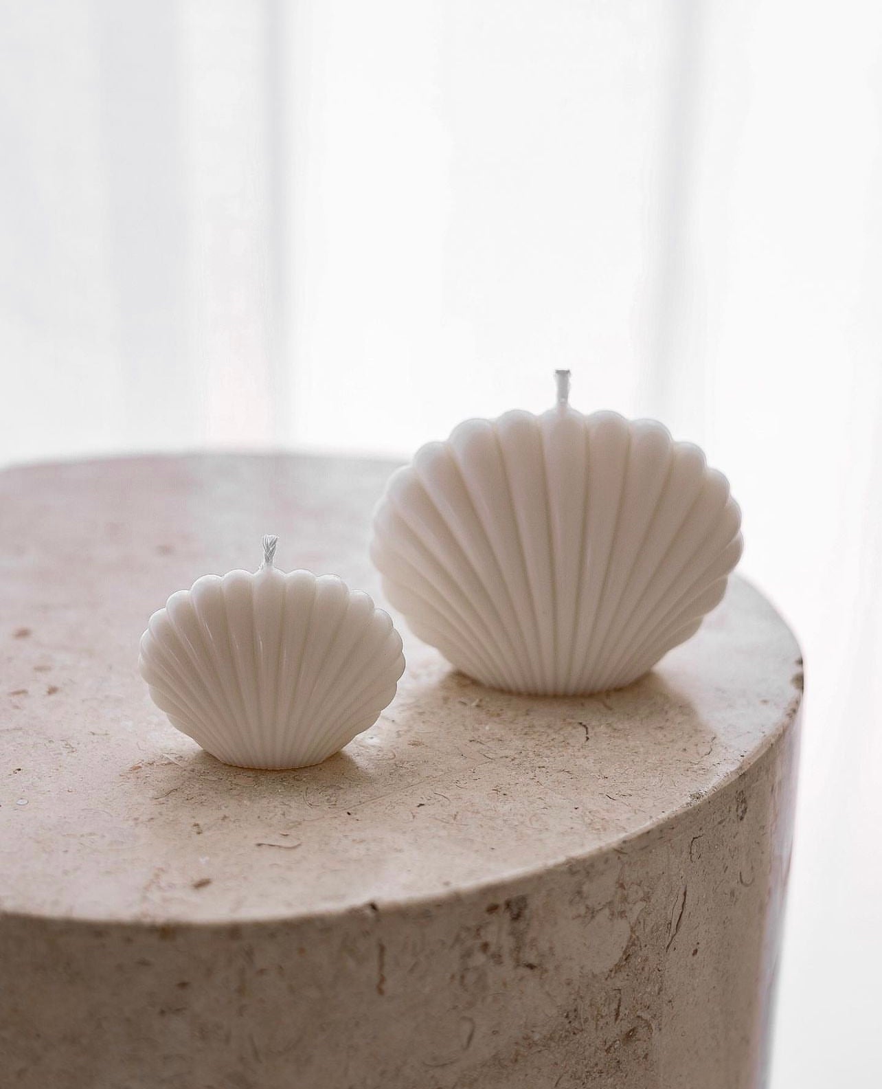 Χειροποίητο διακοσμητικό κερί από φυτικό κερί σόγιας, σε σχήμα κοχύλι.